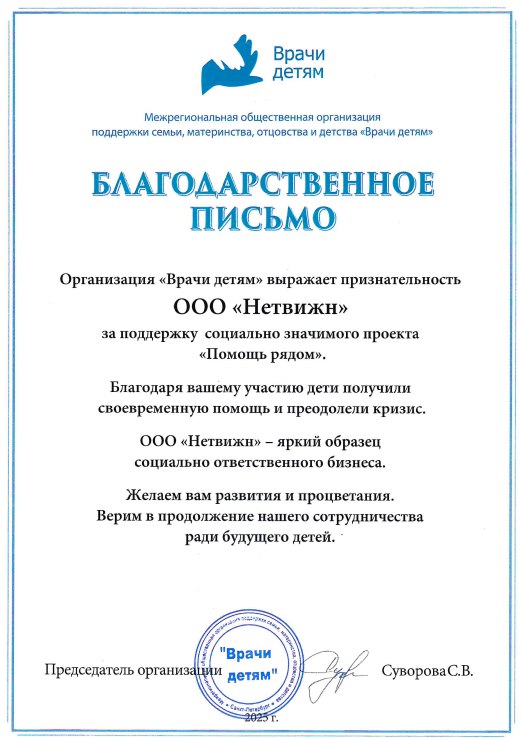 «Этот успех вдохновляет нас продолжать совершенствовать наши технологии и искать новые возможности для их применения. Ведь каждый такой проект приближает нас к будущему, где технологии служат людям во благо. Выражаю глубокую благодарность всем, кто принял непосредственное участие в подготовке выставки, её демонстрации и презентации. Особенно хочу выделить Хоменко Антона руководителя проекта «Сервисная платформа НЕТВИЖН», Романову Елизавету – руководителя отдела маркетинга Нетвижн, Ильжеева Сергея – руководителя отдела продаж Спасибо за работу!»